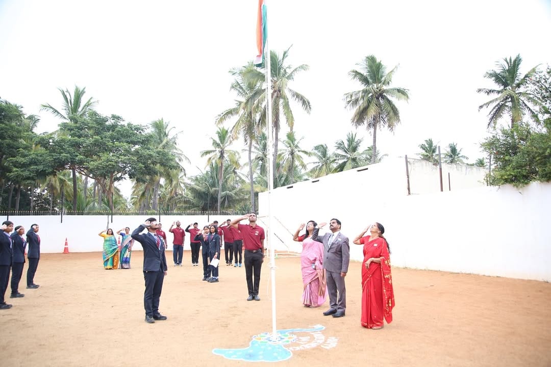From Grades 3 to 12, every learner poured their gratitude onto leaf-shaped cards — each one a whisper of thanks to freedom fighters, soldiers, farmers, scientists, and everyday champions. The air was filled with pride as our COE, Ms. Nalayani, unfurled the tricolor, followed by our Principal, Dr. Stephenson J, who reminded us that true freedom lies in building bridges — within our school, in our communities, and in our hearts.