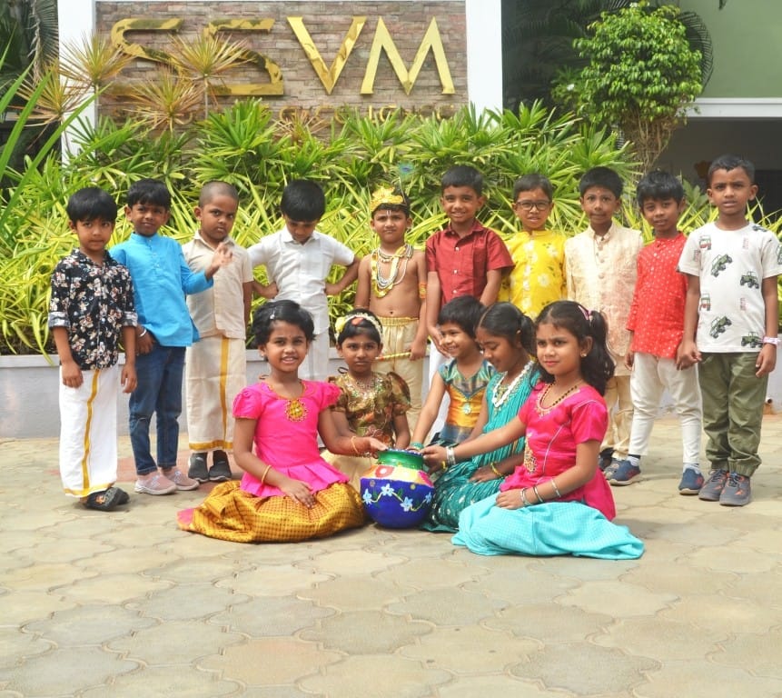 The campus of SSVM School of Excellence came alive with devotion and festivity as students celebrated Krishna Jayanthi with great enthusiasm. The event began with traditional rituals, followed by a series of cultural programs including devotional songs, classical dance, and skits depicting episodes from Lord Krishna’s childhood. The little ones, dressed as Krishna and Radha, stole the show with their vibrant costumes and innocence, spreading joy all around. Teachers and students together celebrated the occasion with zeal, emphasizing the values of love, joy, and righteousness that Lord Krishna embodies. The Krishna Jayanthi celebration at SSVMSE beautifully combined tradition, creativity, and devotion, leaving lasting memories for everyone present.